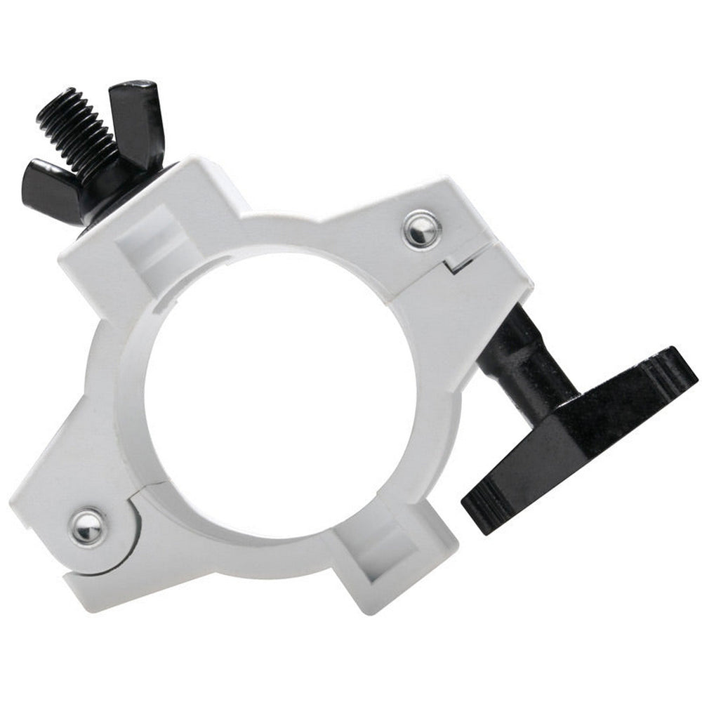 The ADJ O Slim Pearl Clamp is a 360-degree wrap-around clamp designed to fit in narrow truss spaces. It is ideal for securely mounting lightweight lighting fixtures where standard clamps are too large.