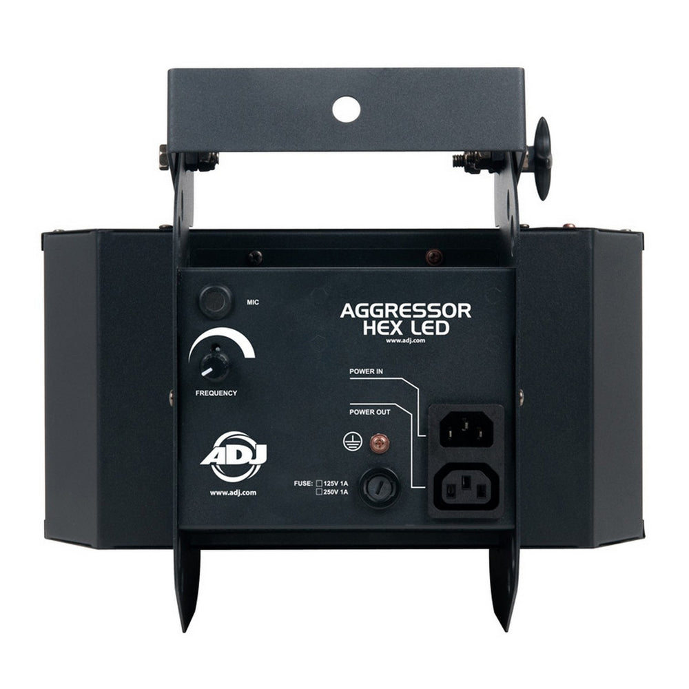 IEC AC IN/OUT on rear to daisy chain power (up to 10 Aggressor Hex LED's @ 120V and 15 Aggressor Hex LED's @ 230V )