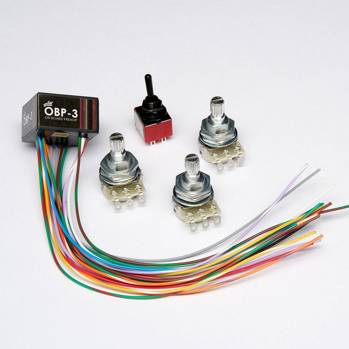 Available in the following kits: OBP-3TK: Includes separate Treble, Mid, and Bass pots, and black mini-toggle switch for Midrange frequency selection; OBP-3TK/PP: Includes separate Treble, Mid, and Bass pots. Mid pot is push/pull for Midrange frequency selection; OBP-3SK: Includes stacked Treble/Bass pot, Mid pot, and black mini-toggle switch for Midrange frequency selection; OBP-3SK/PP: Includes stacked Treble/Bass pot and separate Mid pot. Mid pot is push/pull for Midrange frequency selection.