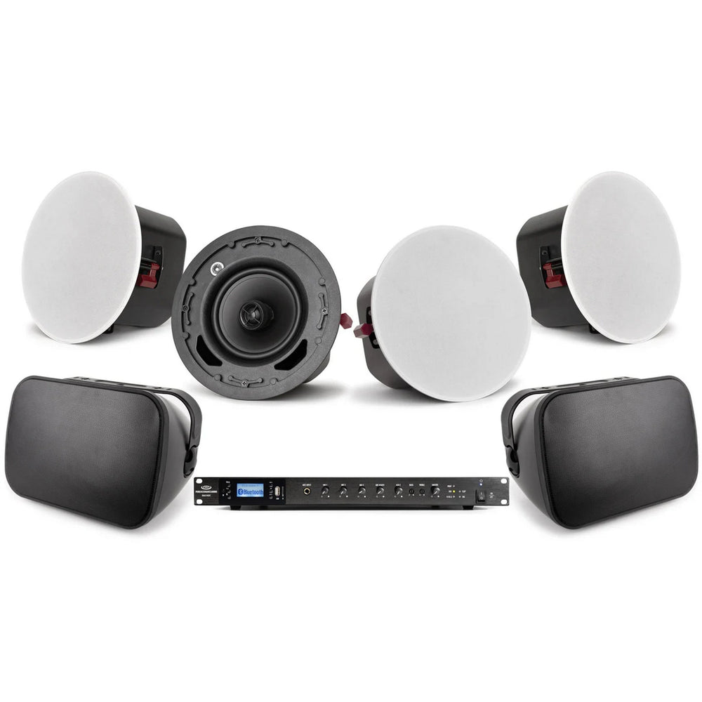 Pure Resonance Audio Commercial Indoor Outdoor Sound System with S6.1 Surface Mount and C6 Ceiling Speakers and RMA240BT 240W Bluetooth Mixer Amplifier