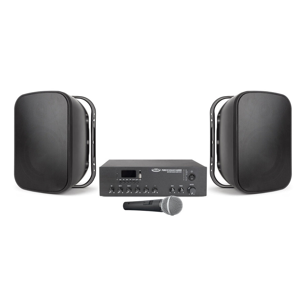 Pure Resonance Audio Conference PA System with 2 S6.1 Surface Mount Speakers, MA120BT 120W Bluetooth Mixer Amplifier, and UC1S Dynamic Vocal Microphone