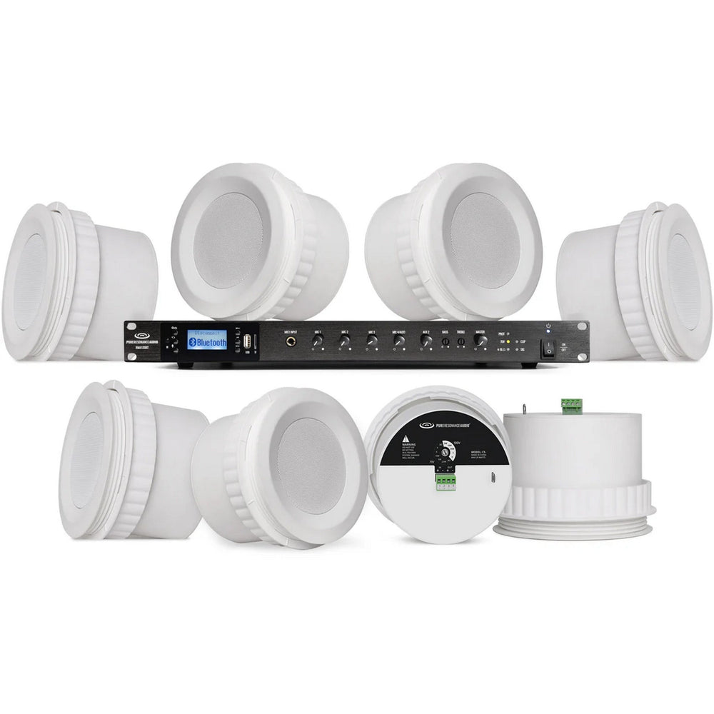 Pure Resonance Audio Office Ceiling Sound System with 8 C5 Ceiling Speakers and RMA120BT 120W Bluetooth Mixer Amplifier
