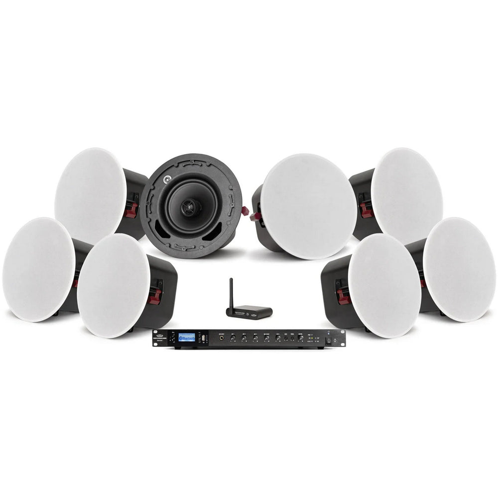 Pure Resonance Audio Office Sound System with 8 C6 Ceiling Speakers, RMA350BT 350W Bluetooth Mixer Amplifier, and BTR1 Bluetooth Receiver