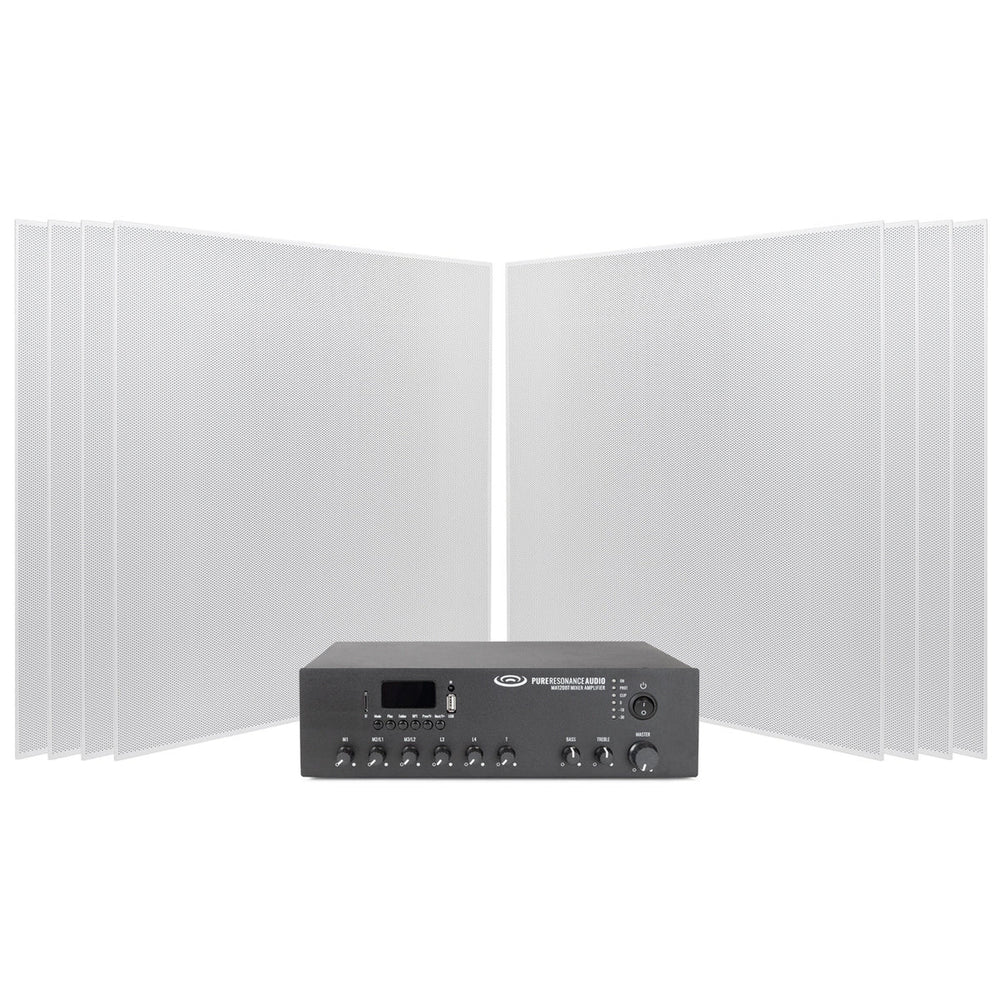 Pure Resonance Audio Office Sound System with 8 SP8 Ceiling Tile Speakers and MA120BT 120W Bluetooth Mixer Amplifier