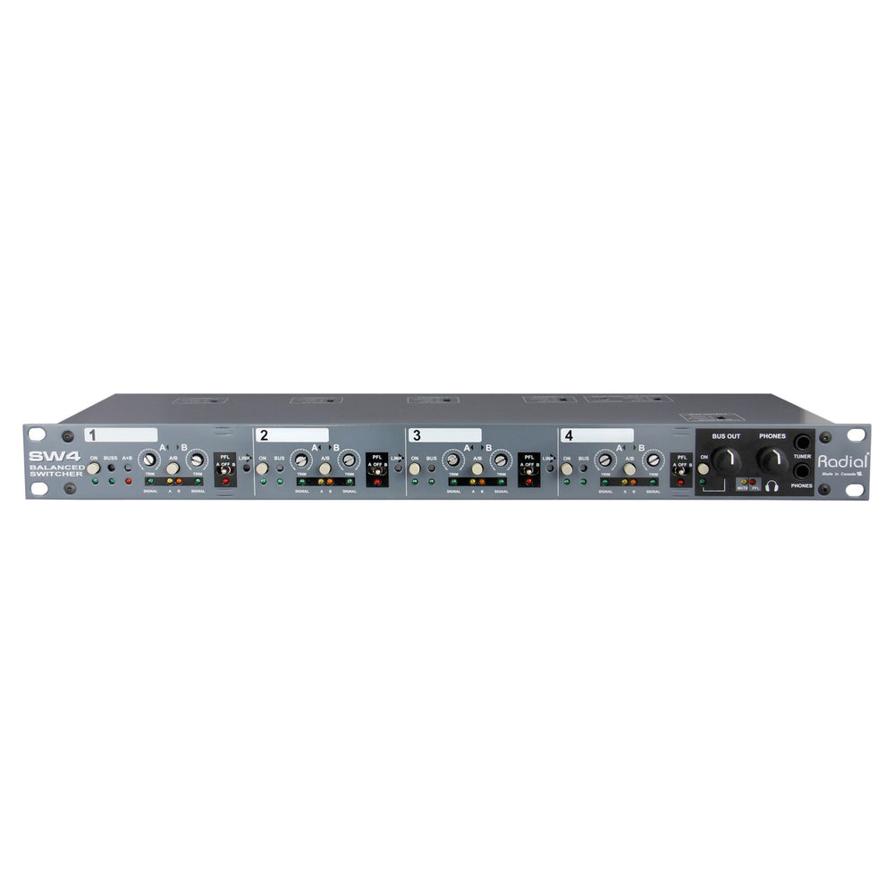 The SW4 allows you to connect two mixing consoles to the same set of outputs, perfect for festivals or venues that switch from one console to another between acts. Each of the four channels features XLR inputs and transformer-isolated outputs to eliminate hum and buzz from ground loops, and they can be linked together to switch simultaneously. Channel-1 has a A+B mix function that sums both inputs together - allowing a wireless mic for the MC to be always active, while PFL switches and headphone outputs allow a technician to monitor any channel to ensure seamless playback. Since individual channels can be switched on their own, the SW4 can also be used to switch multiple wireless systems, playback devices, or any balanced audio sources.