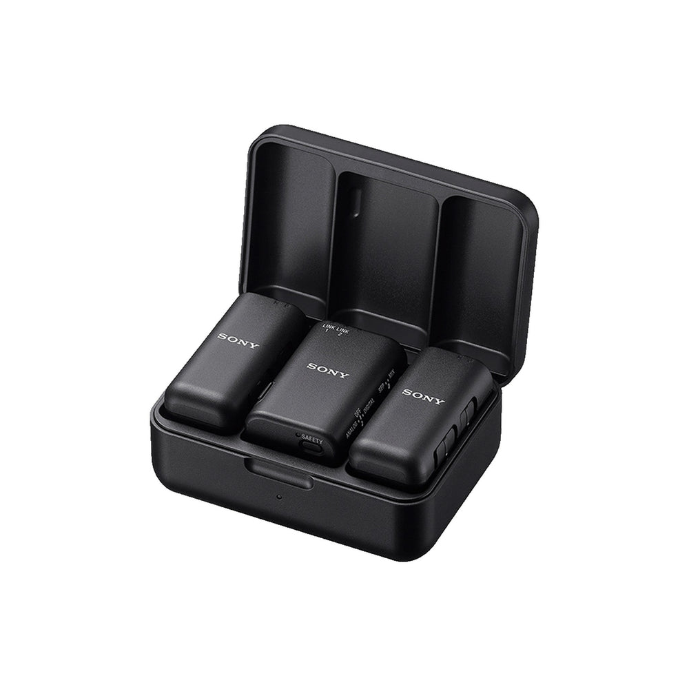 The ECM-W3 comprises two microphone-transmitters featuring high signal-to-noise (S/N) ratio microphone units, and a dual-channel receiver. The transmitters and receiver process audio digitally and transmit it wirelessly, allowing the capture and recording of two speakers' voices with superb clarity and low noise.