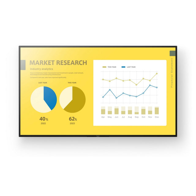 The Sony EZ20L 43-Inch 4K 16/7 Professional Display is an excellent choice for digital signage and corporate applications. Its slim design and user-friendly interface make it easy to use and add impact to your visual communications. With its very high 4K picture quality and 350 nit screen brightness, your content will look stunning and be clearly visible in any indoor environment. Whether you're in a small meeting room or a large conference hall, the wide viewing angle ensures that everyone can enjoy crisp and clear images from any position.