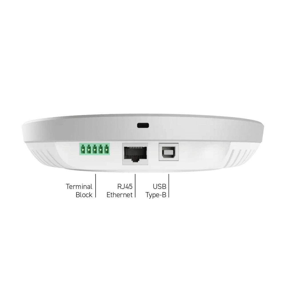 - Ethernet (supports PoE+), Terminal Block, USB Type B, VoIP