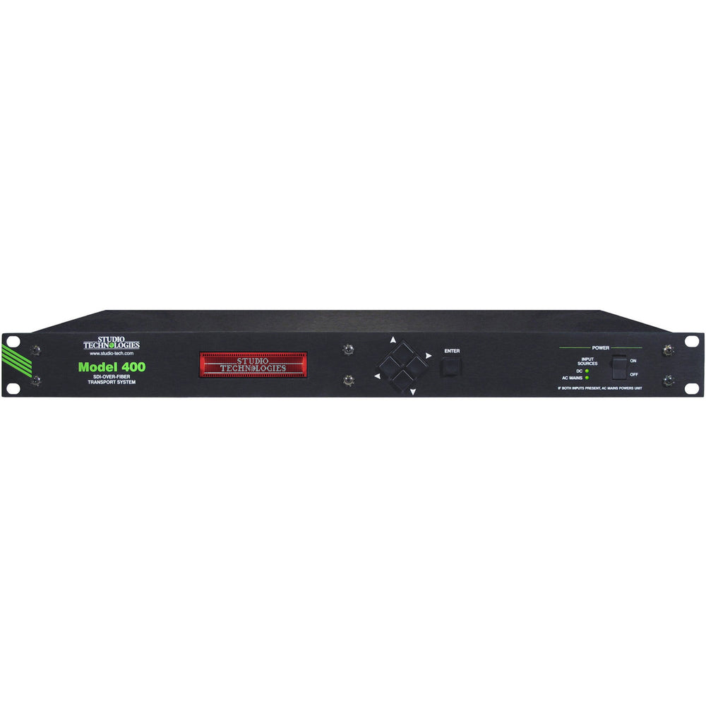 Studio Technologies Model 400-6R SDI-Over-Fiber Transport System is a high-performance, cost-effective, rack-mount solution for distributing digital video signals over short and medium distances. The system is compatible with all common broadcast serial digital video formats and is suitable for use in remote trucks, live-event video distribution, and fixed links associated with broadcast and production facilities. Several Model 400 versions are available, providing a range of input and output configurations.