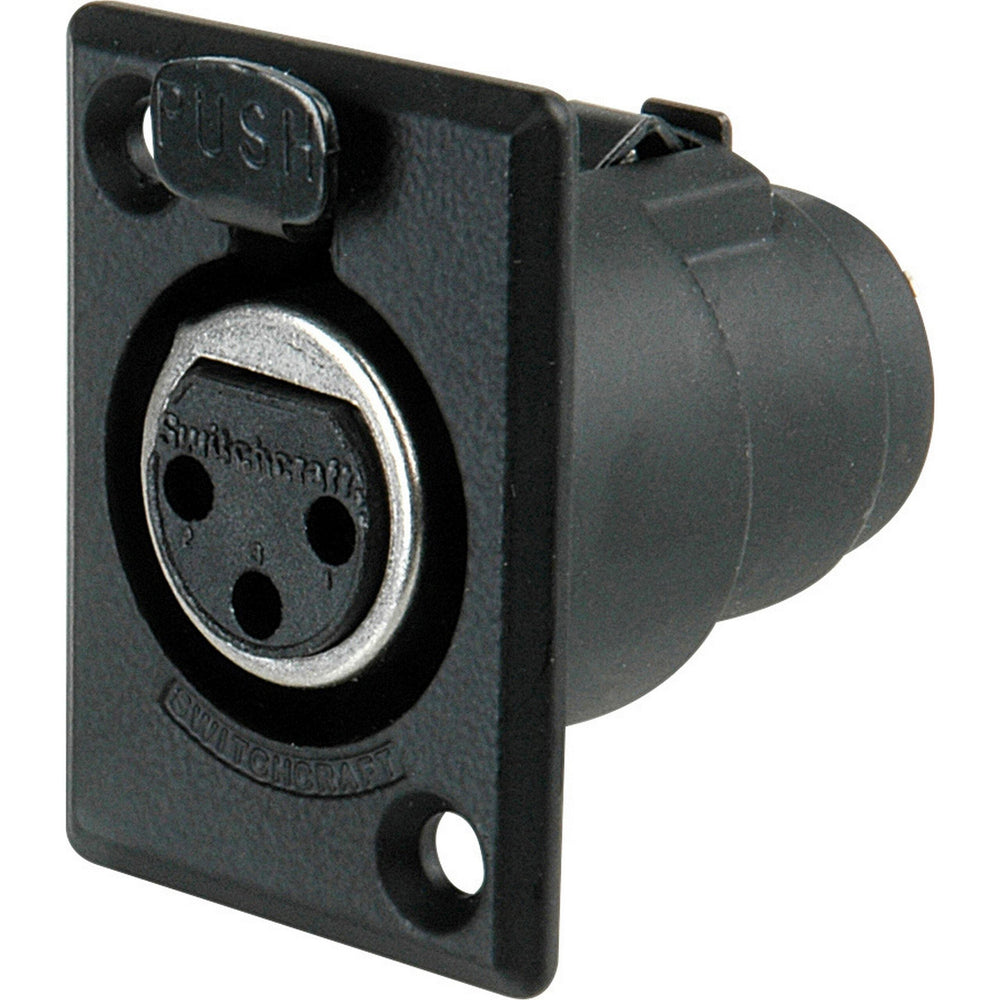 Switchcraft D3FBXBAU 3-Pin Female XLR Panel/Chassis Mount Connector, Black/Gold