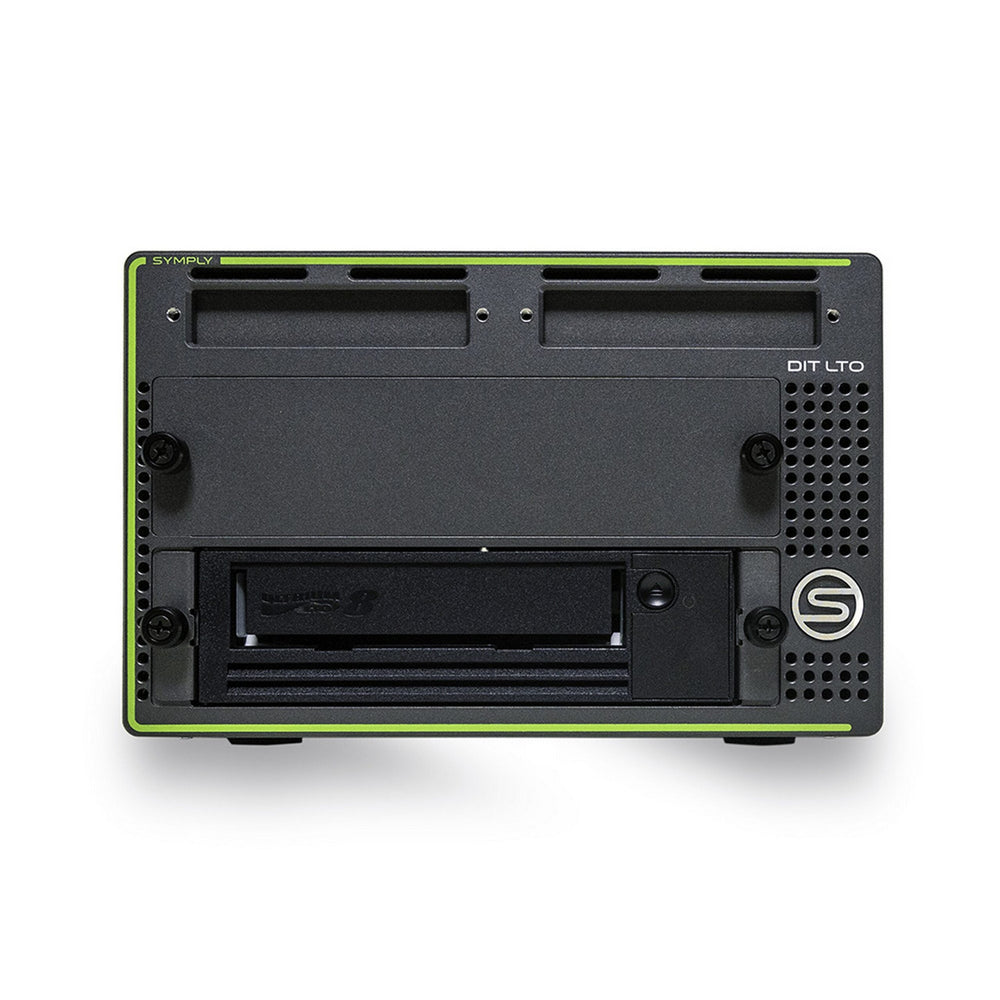 SymplyDIT LTO Desktop Thunderbolt 3 Interface (supports device charging & daisy chaining), dual bay space grey enclosure for backup and archive, with 1 x LTO-8 Half-Height tape drive (upgradable to two drives), and 2 x 2.5" SSD readers (Atomos Master Caddie compatible). Featuring sleek space grey rugged metal alloy enclosure. Native Capacity of 12TB (30TB compressed) and native performance of 300MB/Sec (750MB/Sec compressed). Compatible with LTFS, WORM Media, and 256-bit encryption. Whisper quiet operation with premium Noctua Fan, Internal Auto-Switching Power Supply (110-240v). Kit includes 1 x data cartidge, 1 x cleaning cartidge, 1 x 2m (6.5ft) Active Thunderbolt 3 cable, 1 x Local Power Cable and SymplyATOM software. 3 Year Warranty, with optional extension to 5 years.