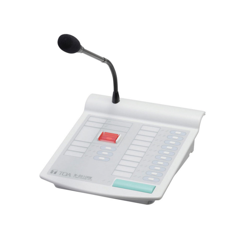 The N-8610RM Remote Master Station is an IP remote microphone station that employs packet audio technology. High quality voice output is broadcast to N-8000 intercom door and master stations or to paging amplifiers using one of the IP to analog audio outputs available on the N-8000AF, N-8000MI or N-8000EX. 14 pre-programmed buttons provide access to stations, paging zones, one-touch dialing, 10-key and Function key. The N-8610RM may be expanded to 54 buttons using multiple RM-210 Extensions. The N-8610RM may be powered by PoE or an optional AD-1215 power supply. When using PoE with RM-210s, make sure that the available PoE can accommodate a minimum of 7.5 W on one port