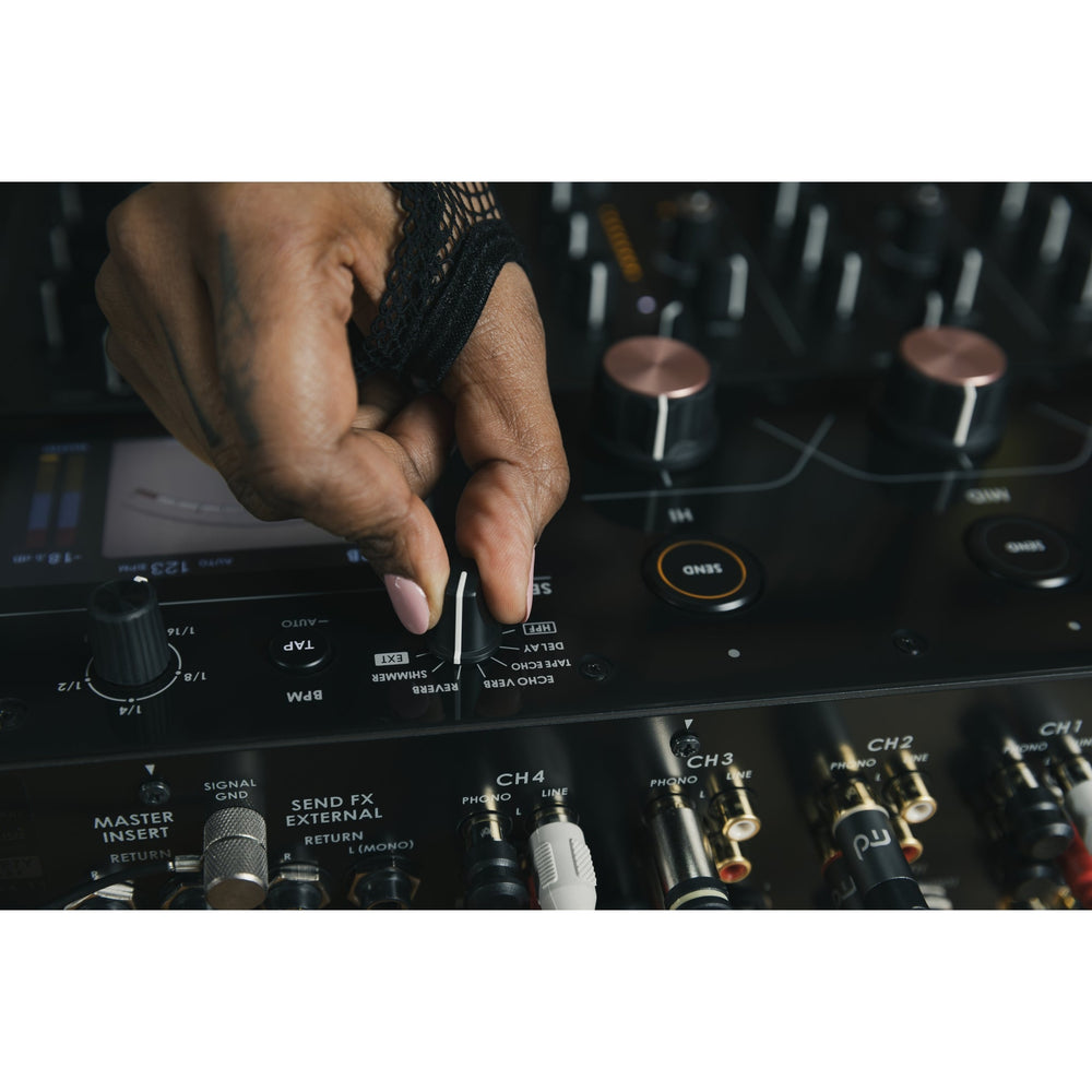 - Includes Send/Return and Master Insert features for external effects connection.