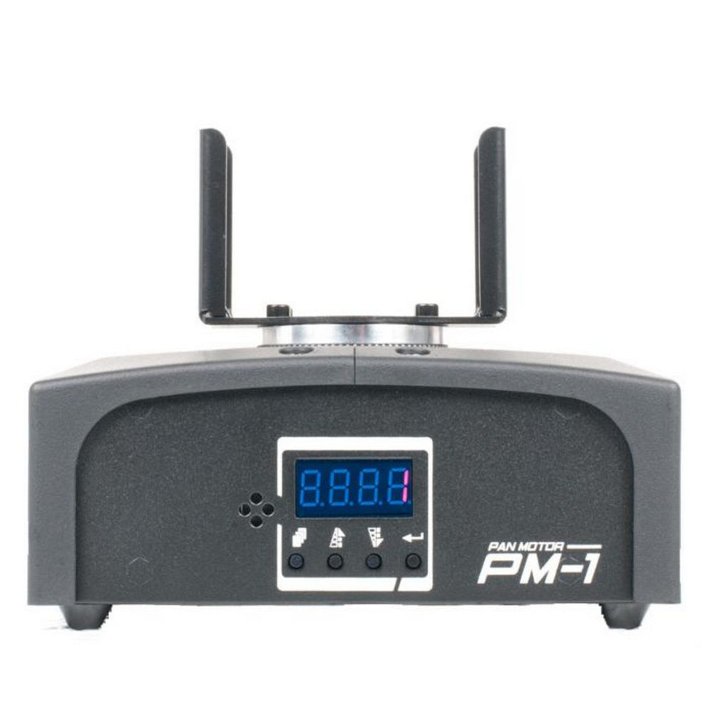 Antari PM-1 is an optional pan motor accessory for the Antari S-500 Snow Machine. Install the output nozzle of the S-500 onto the PM-1 to precisely control 120 degrees of pan movement via DMX-512 or manually using the 4-button LED control panel menu display on the unit. The PM-1 features 2 DMX channel modes, 0-120 degree position index movement and 3 different degree internal auto-pan programs (60°, 90°, 120°) each having 5 speed settings, a pan inversion mode which inverts the pan movement, master/slave modes, 3pin DMX in/out for easy control connection and linking multiple units, an included mini-omega bracket for clamp/truss mounting, and an auto-switching 100-240V power supply.