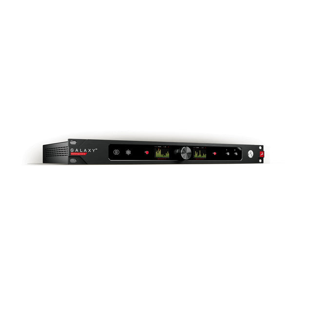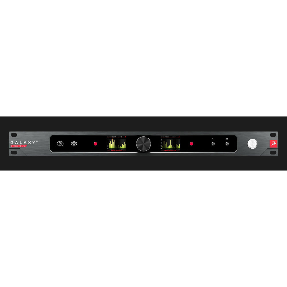 The Galaxy 32 Synergy Core is a high-end, 1U rackmount audio interface combining 32 channels of analog I/O with Synergy Core real-time DSP processing. It provides seamless integration through Thunderbolt 3, HDX, Dante, MADI, ADAT, and S/PDIF, making it ideal for professional studios, post-production, and immersive audio environments.