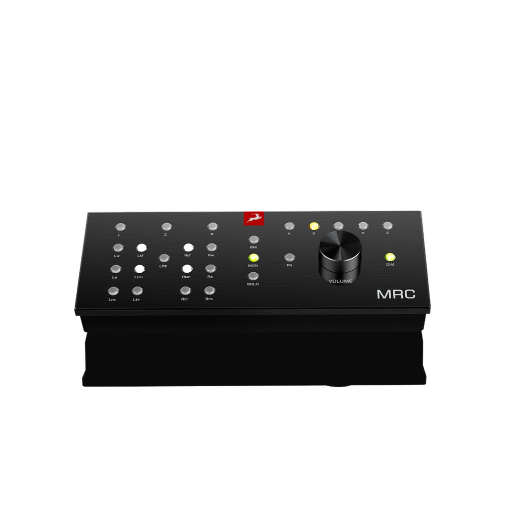 The Antelope Audio MRC is a tactile, bus-powered hardware controller designed for seamless control of immersive multichannel monitoring systems. It mirrors the key monitoring functions of supported Antelope interfaces, enabling fast preset recall, channel solo/mute toggling, volume control, and format switchingāall with intuitive LED feedback.