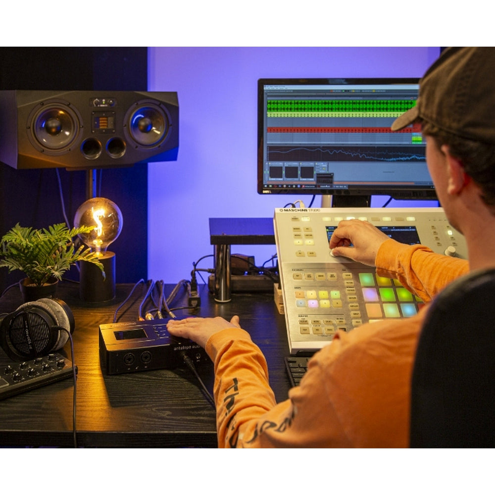 - Preamps: 4 Discrete 6-transistor mic/line preamps with up to 75 dB gain; 2 of these support Hi-Z; 48 V phantom power.