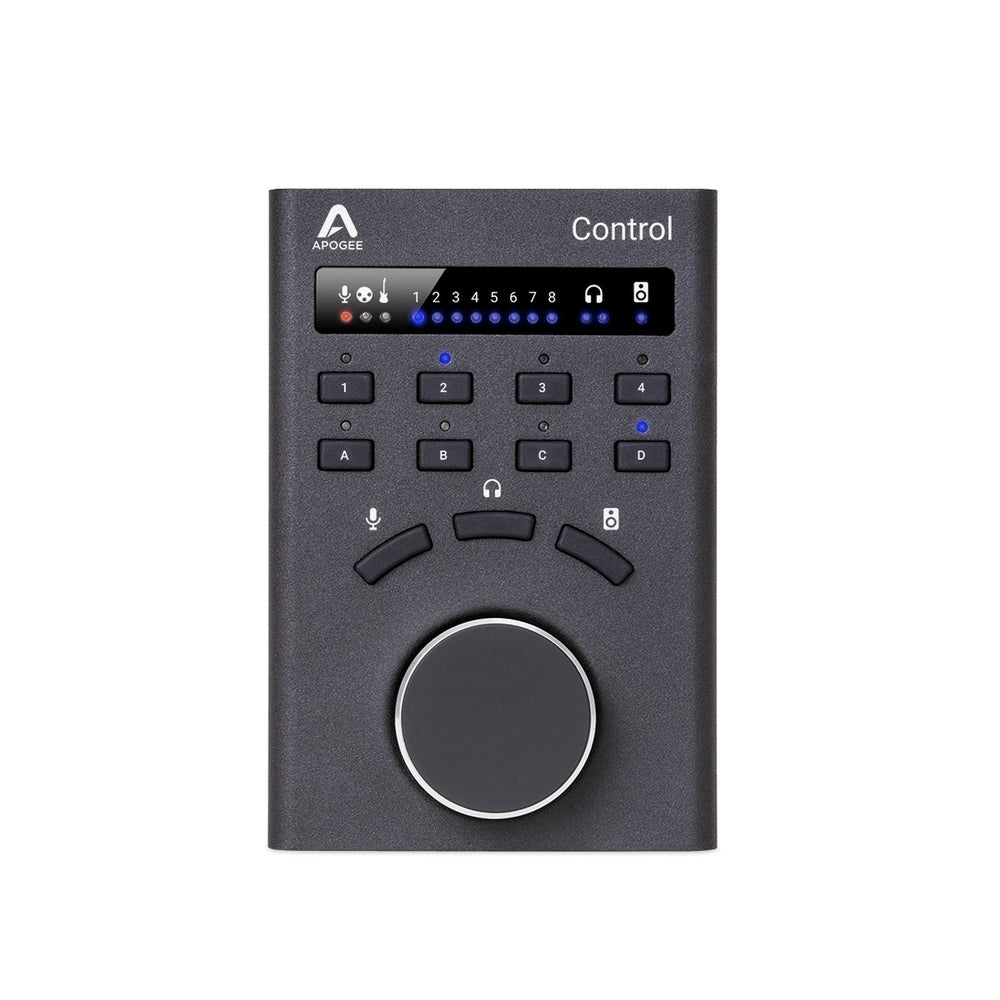 The Apogee Control is a desktop USB hardware remote for Symphony I/O Mk II, Ensemble Thunderbolt, and Element series interfaces. It adds tactile control for your workflow via a large encoder knob and eight assignable buttons.