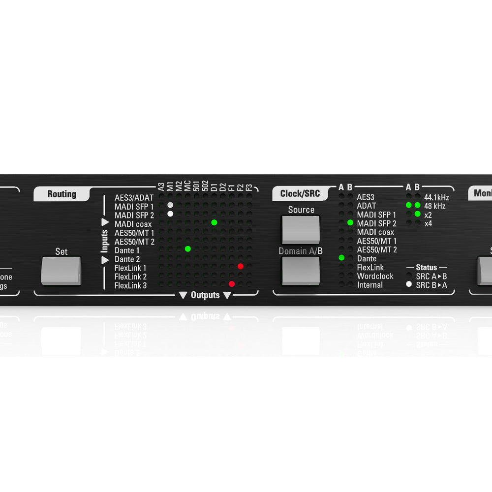- Bi-directional sample rate conversion up to 128 channels using the SRC-64 plug-in module