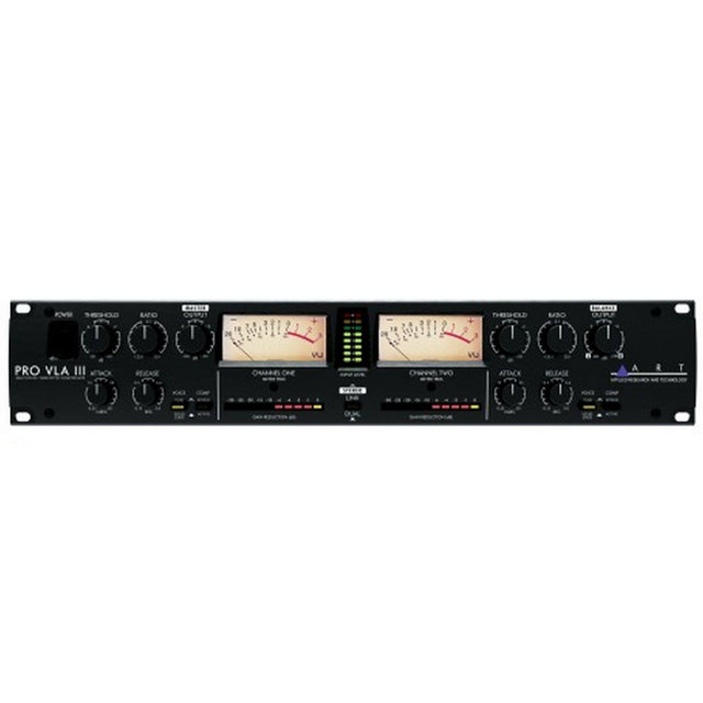 The ART Pro VLA III is a two-channel optical compressor designed for studio applications requiring smooth, musical dynamic control. It supports dual mono or linked stereo operation and incorporates an authentic 12AT7 tube stage. Suitable for tracking, mixing, and mastering, it provides transparent control or warm coloration depending on voicing.
