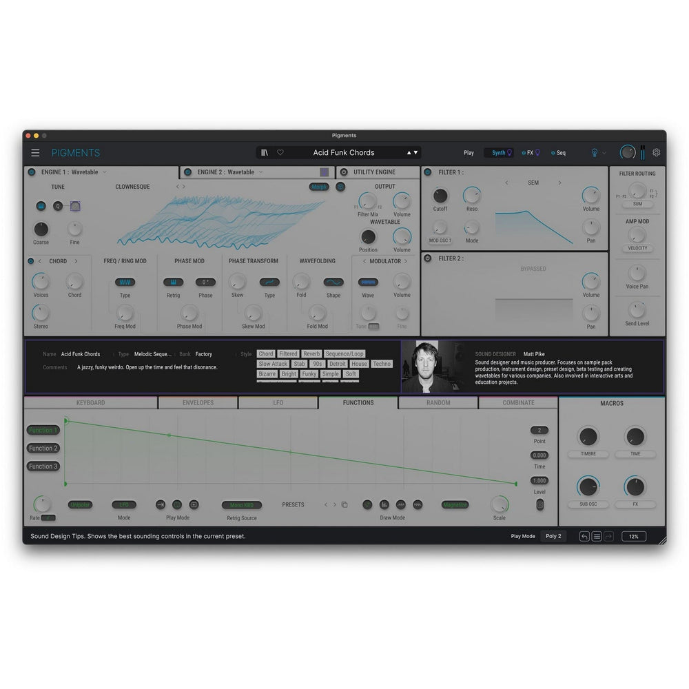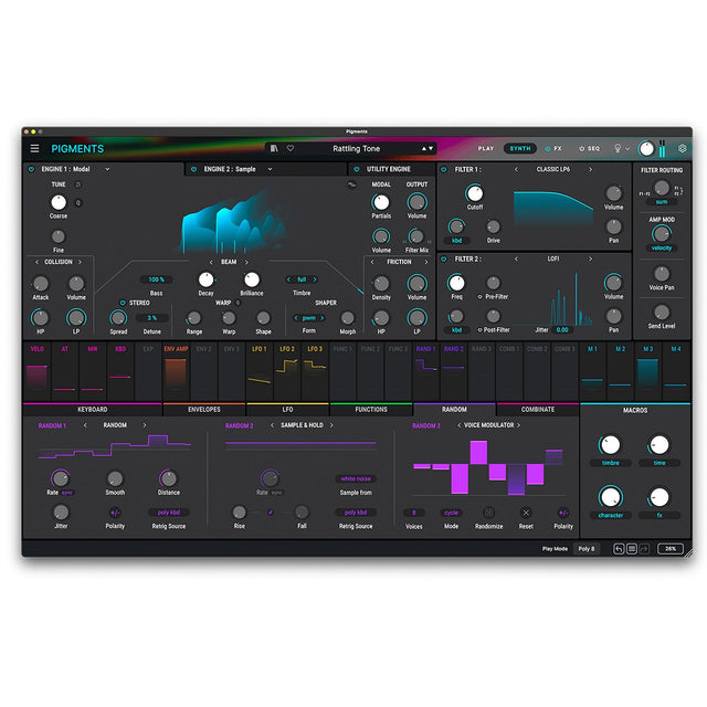 Pigments is an all-in-one software synthesizer designed for modern producers and sound designers. It blends multiple synthesis engines with drag-and-drop modulation, a visual interface and premium effects to help you shape your sonic vision.