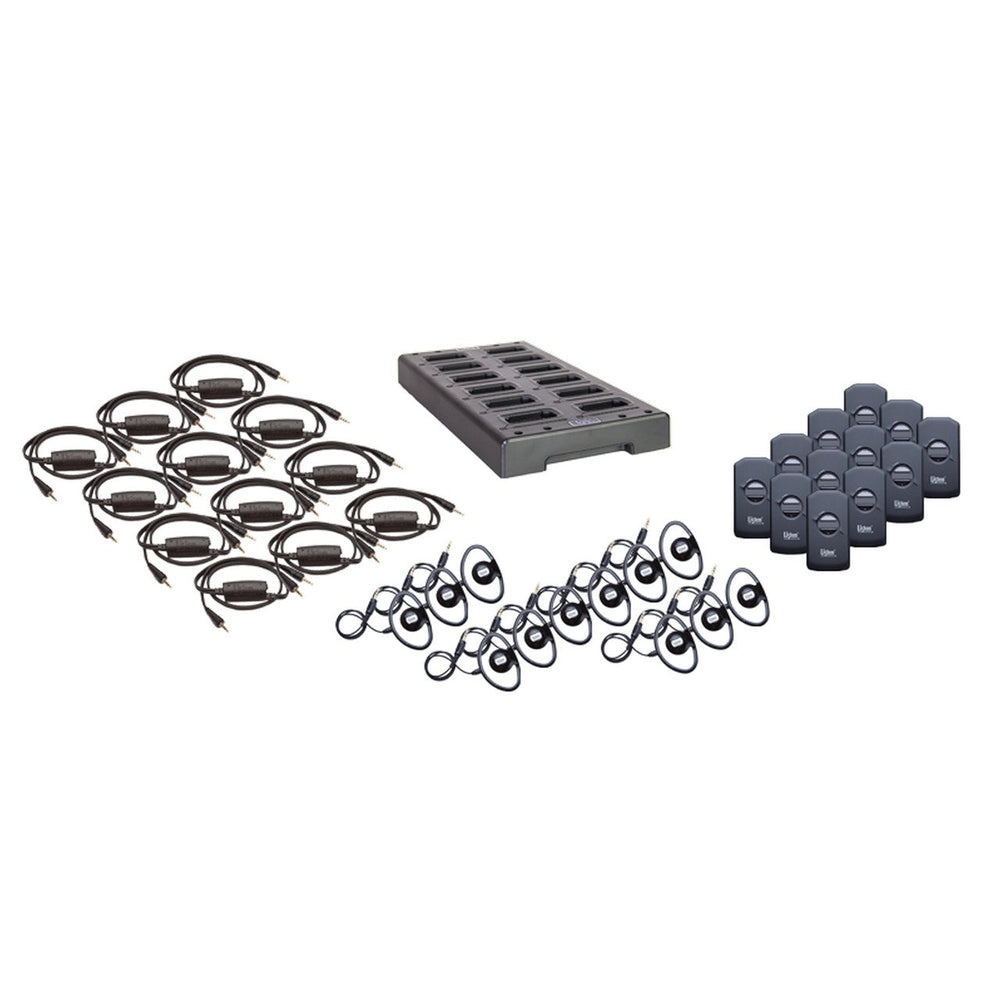 • Includes twelve (12) LR-4200-072 industry leading RF receivers, integrated neck loops/lanyards, universal ear speakers, and a 12-unit charging tray