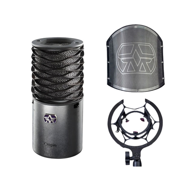 Elevate your recording studio with the exceptional Origin Black Bundle from Aston Microphones. This meticulously crafted bundle offers the ultimate solution for high-quality audio capture, combining the renowned Origin microphone with a selection of premium accessories. The Origin Black Bundle is designed to deliver superior sound clarity, making it an ideal choice for both professional and home studios. The microphone's distinctive design not only enhances its aesthetic appeal but also contributes to its outstanding performance. Whether you're recording vocals, instruments, or podcasts, this bundle provides the tools you need to achieve pristine audio quality.