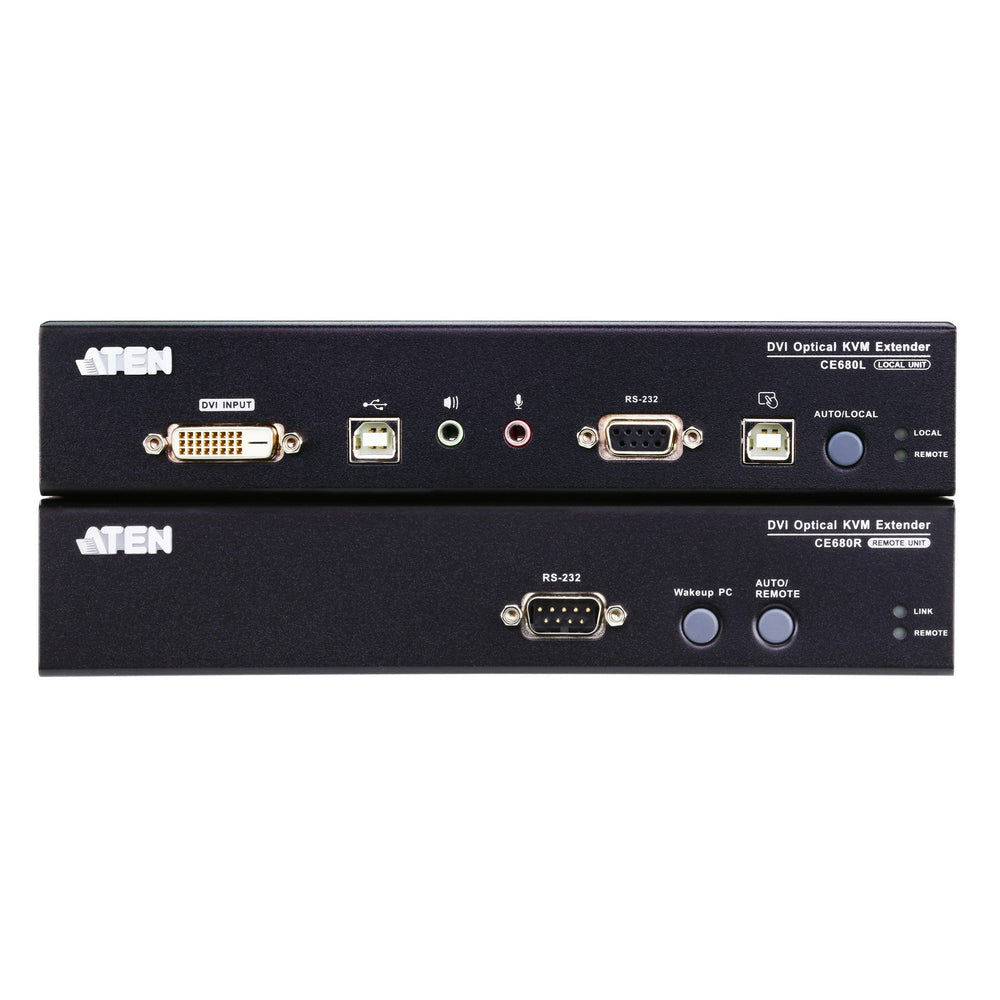 The CE680 is a DVI Optical KVM Extender that overcomes length restrictions of standard DVI cables by using fiber optics to send high definition audio, video and control signals over longer distances. The CE680 can transmit KVM DVI signals very long distances - up to 600 m away from the source. The extender takes audio/video streams from the local source and serializes the data to pass it over a single 3.125 Gbps optical link, for resolutions up to 1920 x 1200 @ 60Hz, 24-bits, with picture perfect quality.