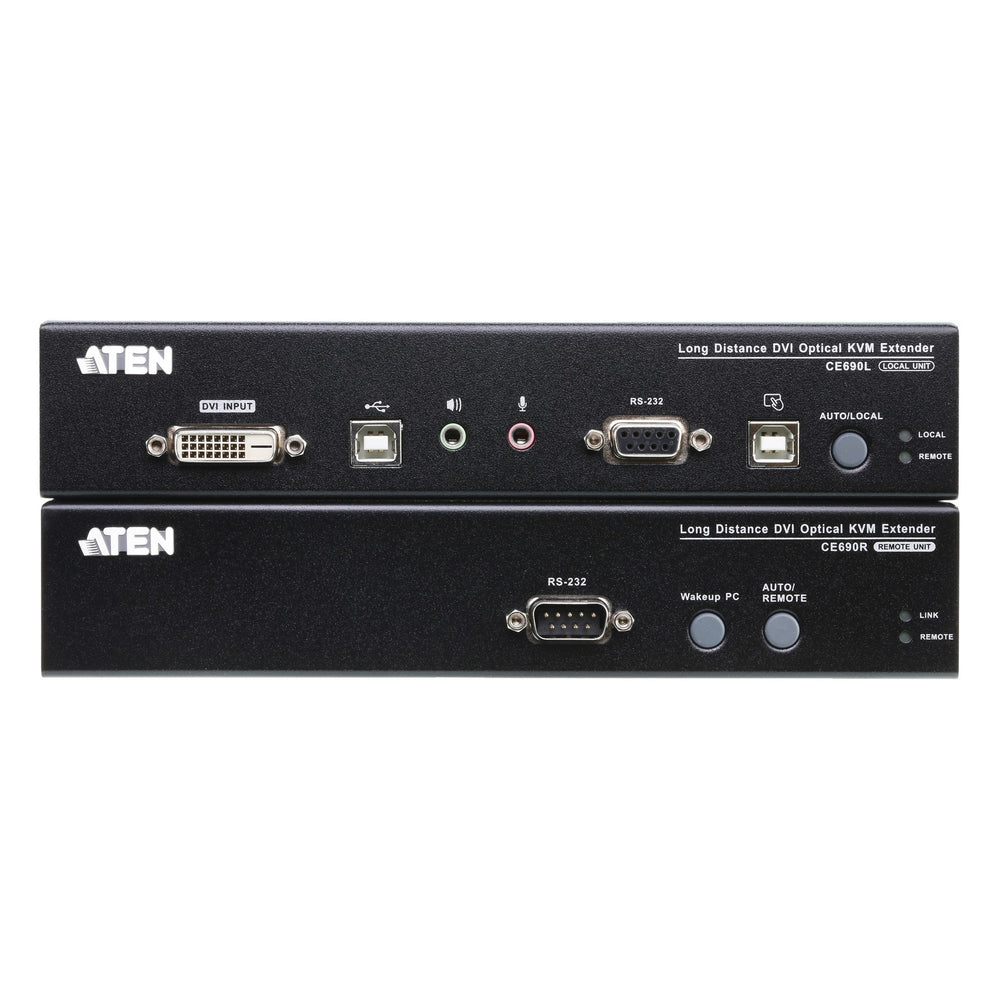 The CE690 is a DVI Optical KVM Extender that overcomes the length restrictions of standard DVI cables by using fiber optics to send high definition audio, video and control signals over long distances. The CE690 can transmit KVM DVI signals extremely long distances - up to 20 km away from the source. The extender takes audio/video streams from the local source and serializes the data to pass it over a single 3.125 Gbps optical link, for resolutions up to 1920 x 1200 @ 60Hz, 24-bits, with picture perfect quality.