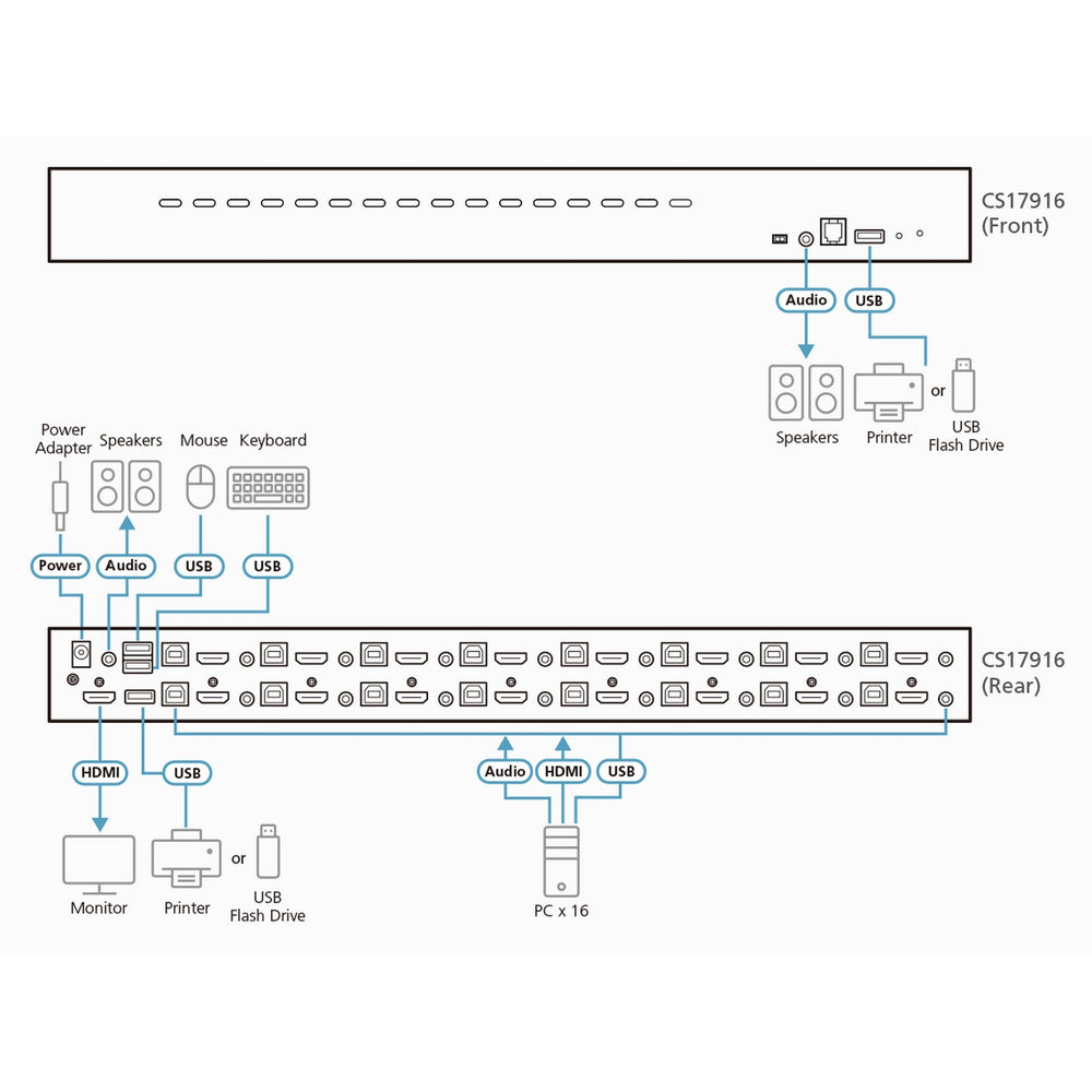 ATEN CS17916 16-Port USB HDMI/Audio KVM Switch