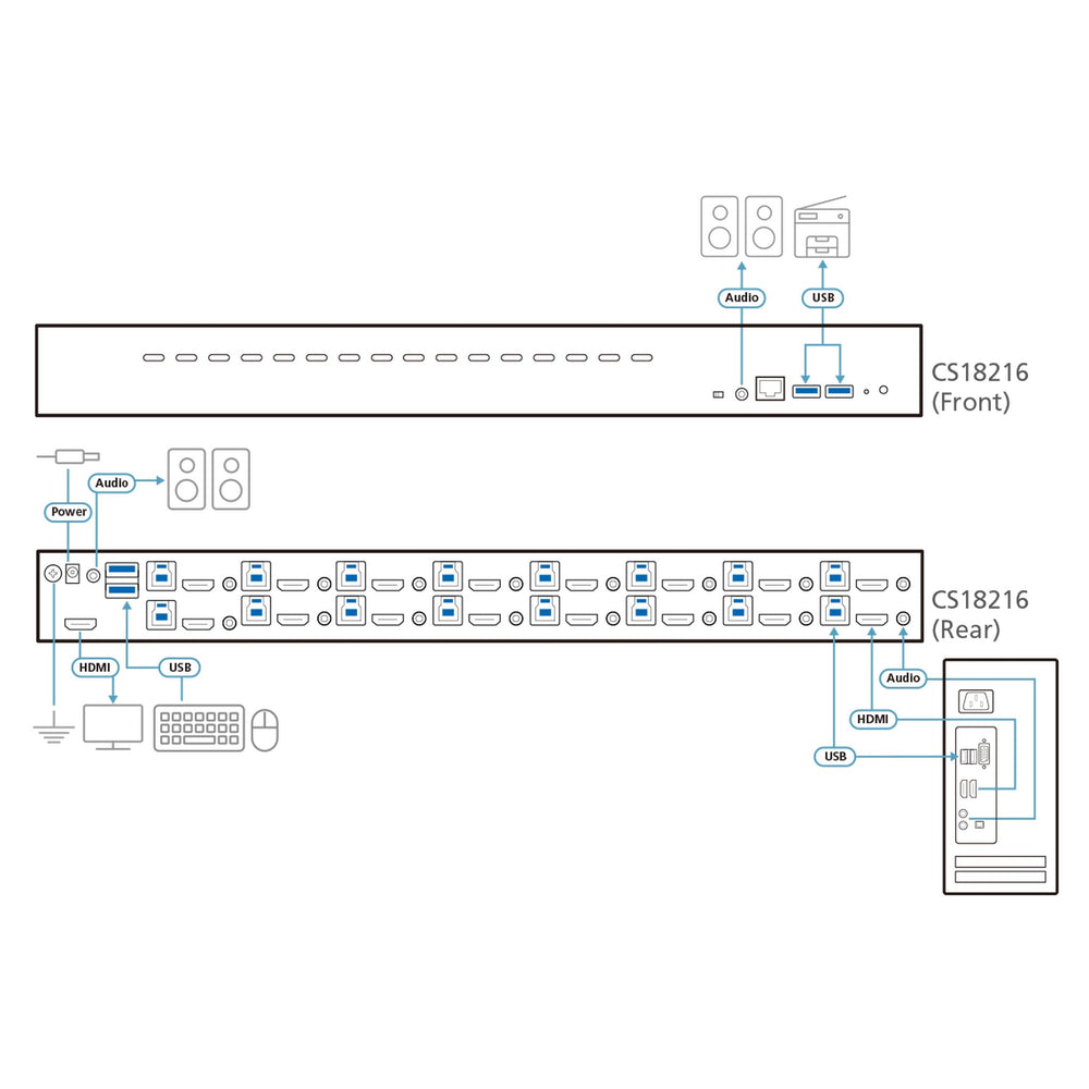 ATEN CS18216 16-Port USB 3.0 4K HDMI KVM Switch