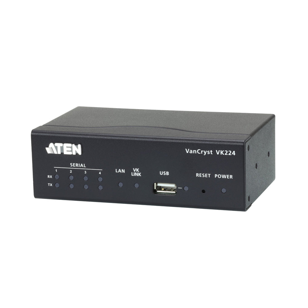 The VK224 4-Port Serial Expansion Box provides four additional bi-directional RS-232 / 422 / 485 serial ports for a flexible expansion of the ATEN Control System. This allows users to control additional serial devices in an environment where more serial devices are required. With the advantage of an Ethernet-based connection, the expansion box can be easily connected to the VK2100 Control Box via a LAN connection from a variety of locations across a network.