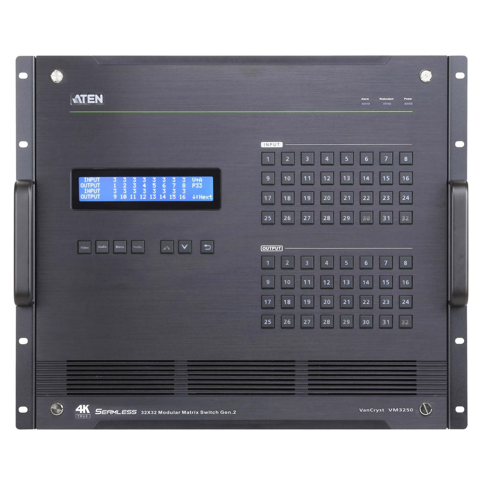 The VM3250 Modular Matrix Switch Gen. 2 provides advanced access and real-time control over multiple local and remote A/V input devices and displays from a single chassis. Here are the key features and benefits of the VM3250: