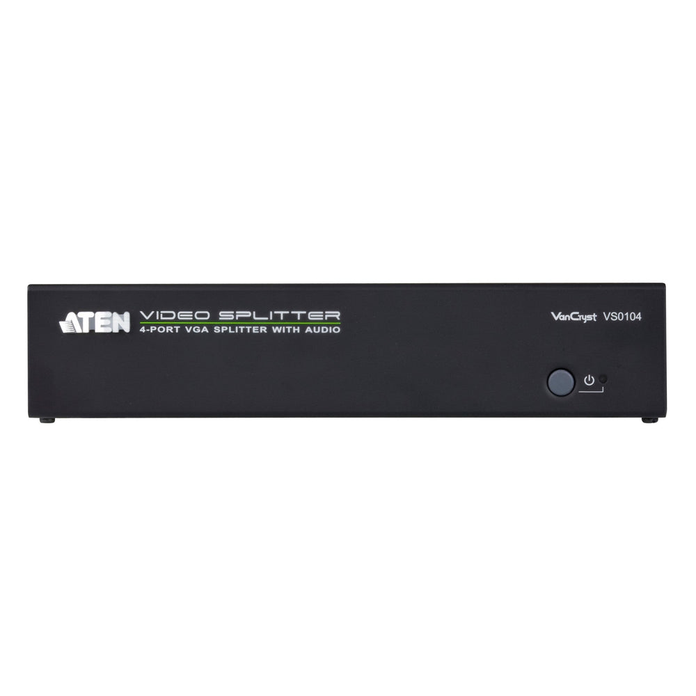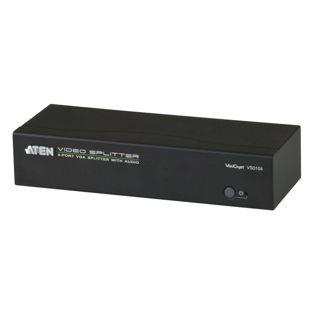 The ATEN VS0104 4-Port VGA Splitter with Audio is VGA splitter that allow a single VGA video & audio signal to be distributed to four output displays with independent stereo control. The splitter support up to 450MHz video bandwidth, which provides optimum video quality, supported by resolutions up to 1920x1440.