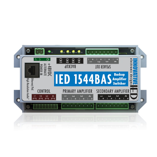 The AtlasIED 1544BAS is a compact, network-enabled amplifier switching module designed to enhance system reliability in commercial AV installations. Capable of switching up to four speaker loads from a primary amplifier to a backup, this unit ensures uninterrupted audio delivery during amplifier failure. It operates in two modes—stand-alone via logic inputs or network-controlled through the GLOBALCOM® supervision sub-system.