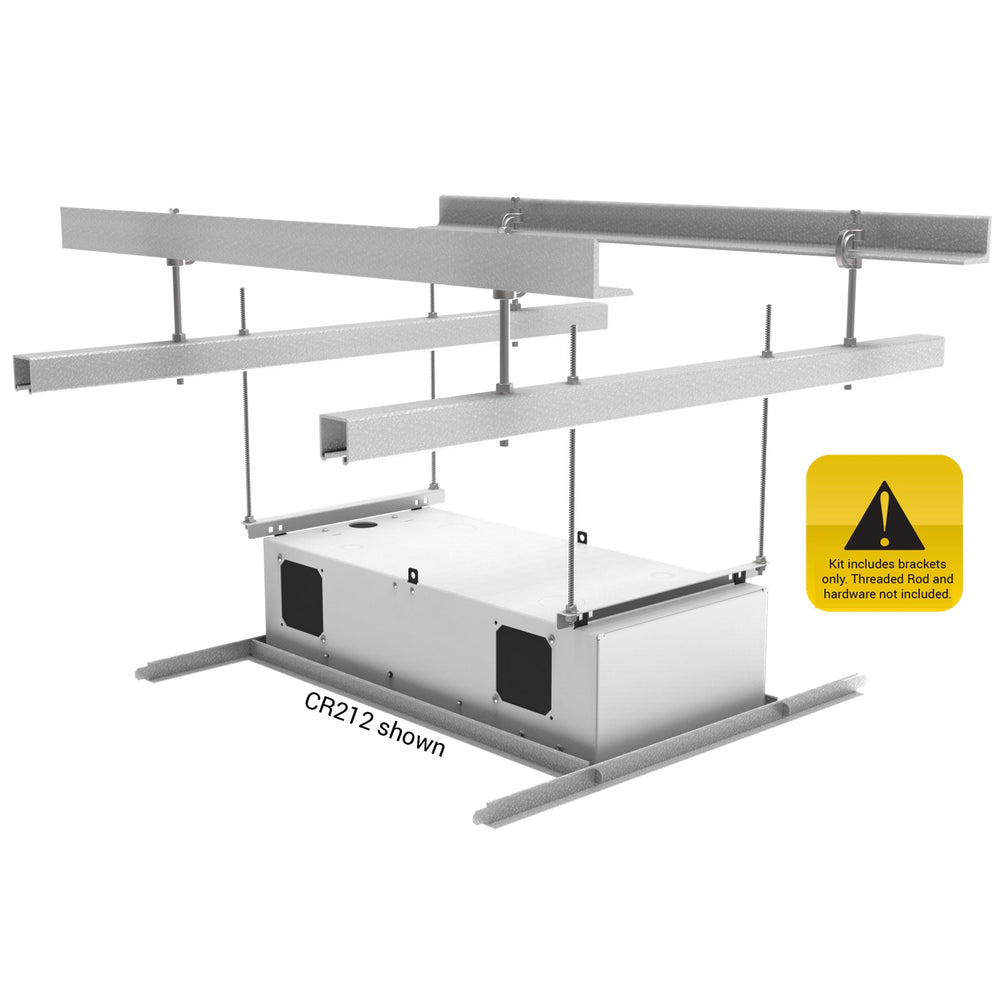 Constructed with durable materials, the CR222TRK ensures stable mounting while maintaining compliance with UL plenum requirements. This accessory complements the CR222 series by offering a robust suspension solution that integrates seamlessly with the AmbiTILT™ shelf system and integrated AC power pack of the CR222 racks.