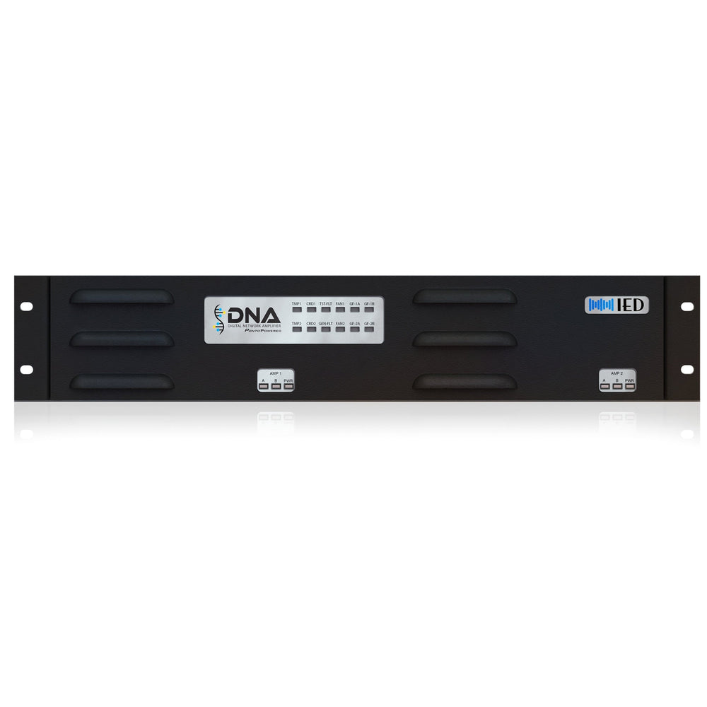 Equipped with support for real-time ambient noise analysis, the DNA2404 series automatically adjusts output levels to maintain clarity across all channels. Enhanced with SNMP monitoring, output supervision, and fault reporting, the amplifiers provide a scalable, supervised solution for mission-critical AV environments. All models are rack-mountable (2RU), made in the USA, and BAA compliant. Select from four model variations based on voltage and digital audio protocol requirements.