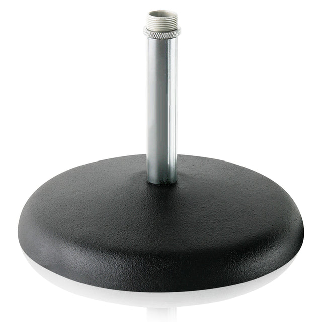 The DS5 Fixed Height Desktop Mic Stand offers a traditional design with a circular cast iron base and durable chrome-plated tubing, making it ideal for use with any standard microphone. Available in both chrome and ebony finishes, this stand combines quality construction with a weighted base for maximum stability and a professional appearance suitable for a wide range of microphone placement applications.