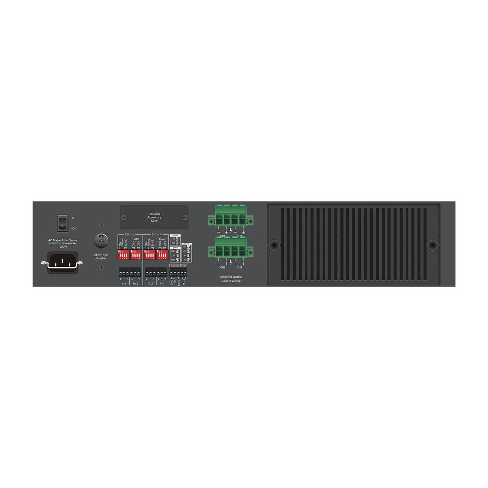 - Output: 4 × 300W @ 70.7V, 100V, 8Ω, or 4Ω
