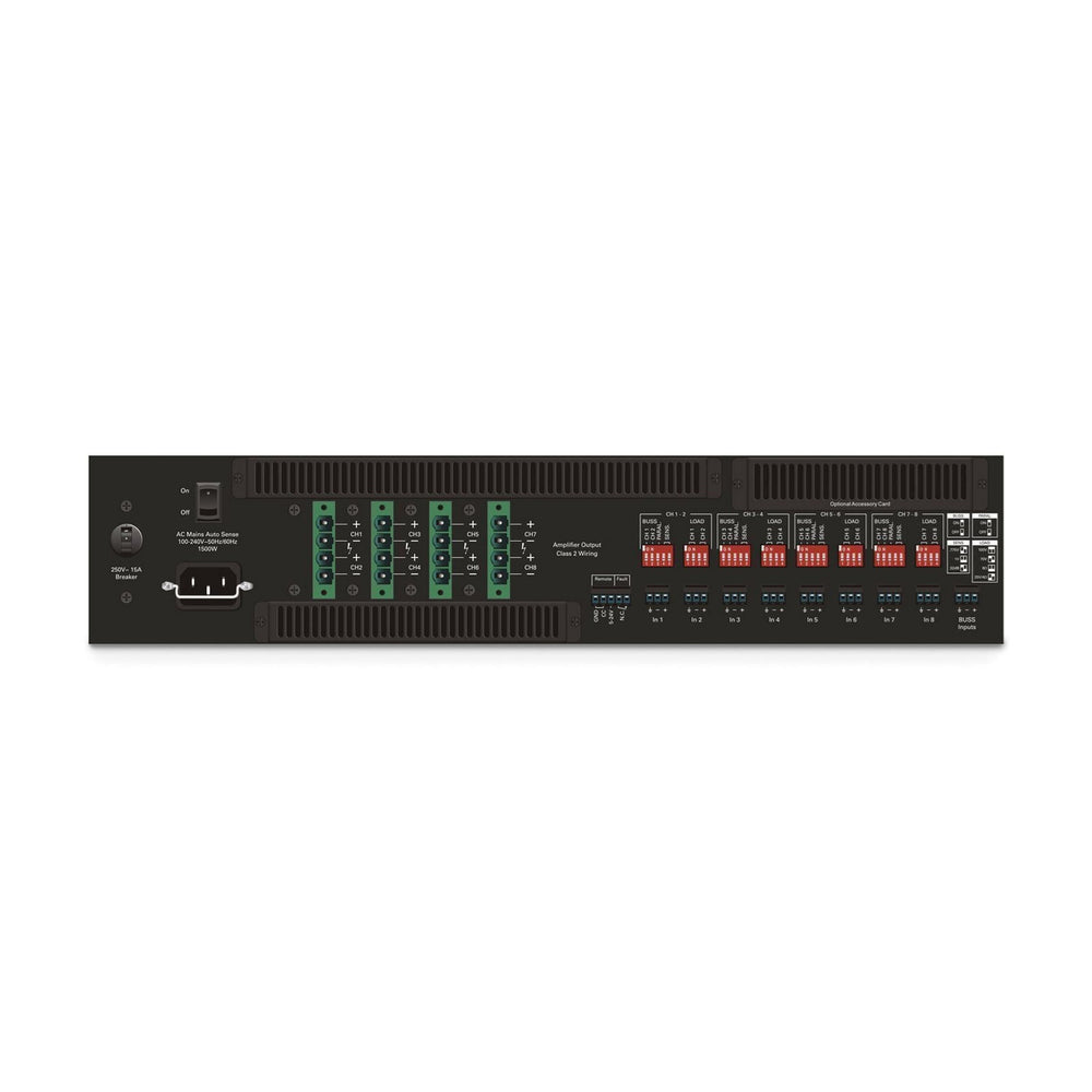 - Eight independent 300 W channels: Supports multiple impedance loads (4 Ī©, 8 Ī©, 25 V, 70 V, 100 V).