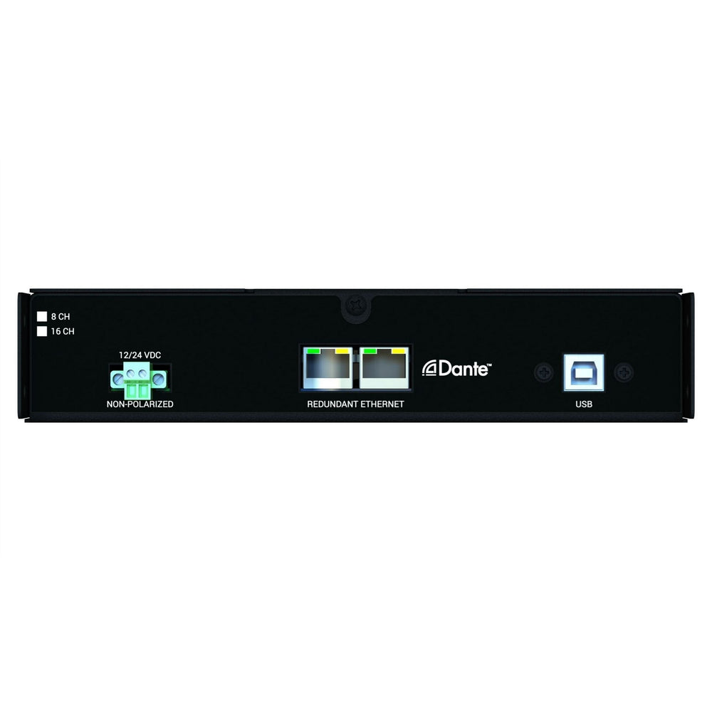 - Dante Audio Support: Transmits and receives 8x8 or 16x16 channels over USB