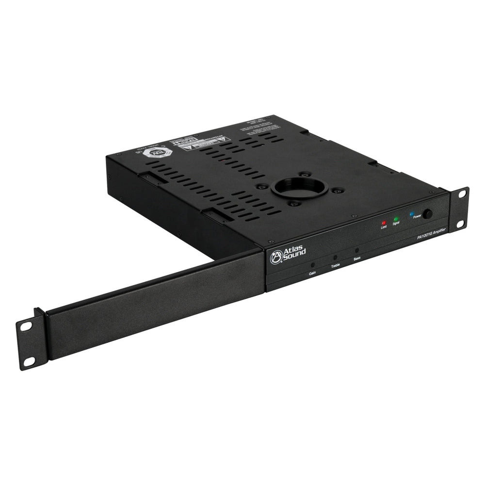 The AtlasIED PA1001G is an ultra‑compact (1RU, half‑rack) 100 W power amplifier designed for 70 V/100 V distributed audio systems in commercial environments. Its patent‑pending through‑chassis mounting hole allows seamless integration with ceiling‑mounted projector poles, keeping installations streamlined and secure.