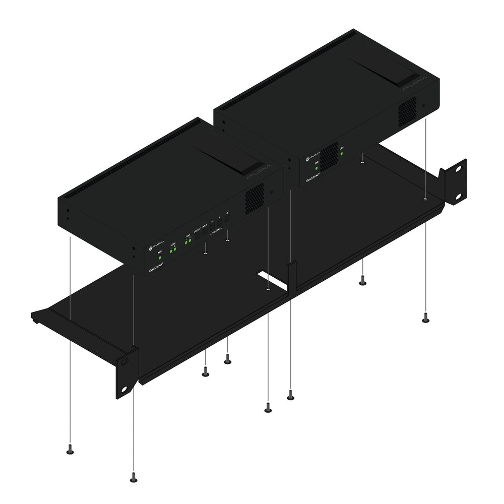 The Atlona AT-OMNI-1XX-RACK-1RU is a professional-grade 1U rack mount shelf designed for organizing and securing up to two Atlona OmniStream Pro or R-Type encoders and decoders. This full rack-width accessory provides a clean and efficient installation solution, ideal for structured AV environments, equipment closets, or data center racks. It allows integrators to optimize space and maintain tidy rack layouts while ensuring reliable equipment support and accessibility.