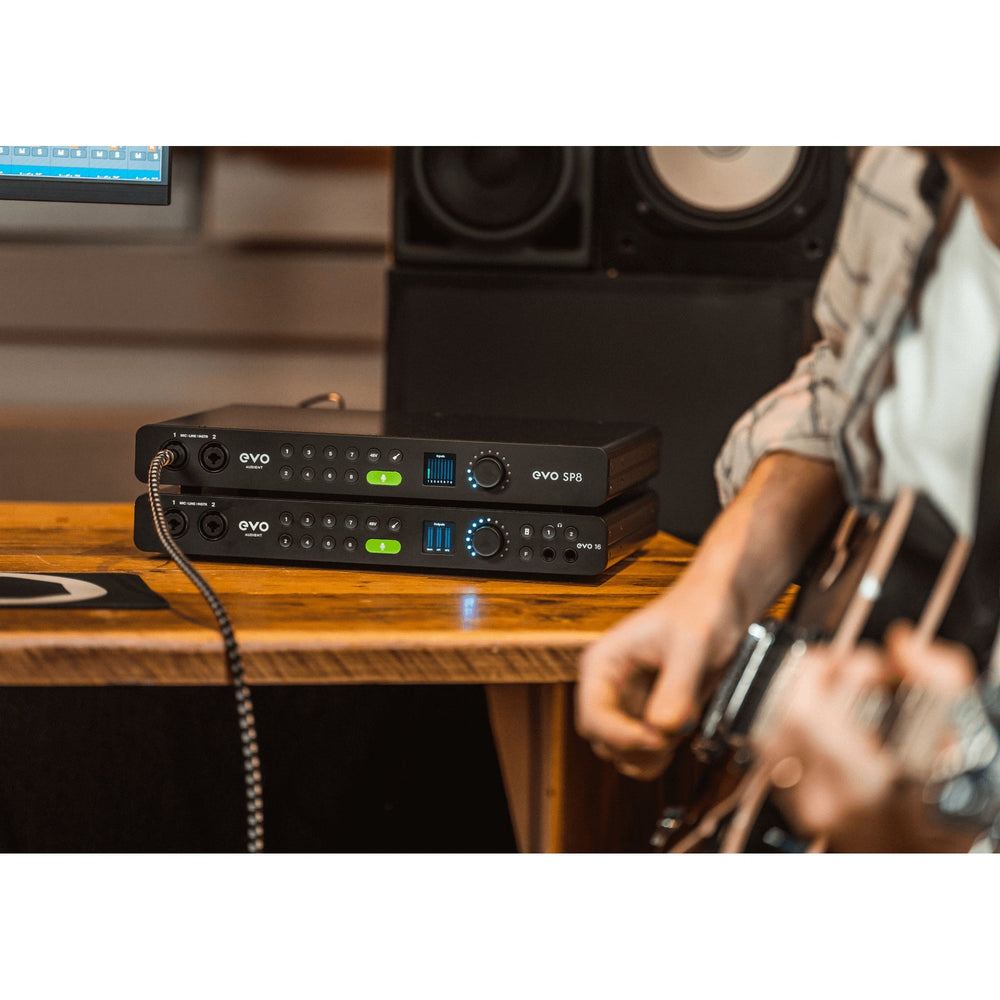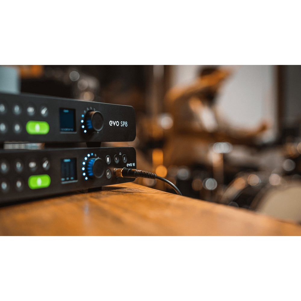 Expanding your audio interface via ADAT can be a cost-effective solution for handling larger sessions. EVO SP8 offers eight mic/line inputs, eight line outputs, and 2 x ADAT connections, providing ample I/O capability for tasks like recording drums or capturing a full band.