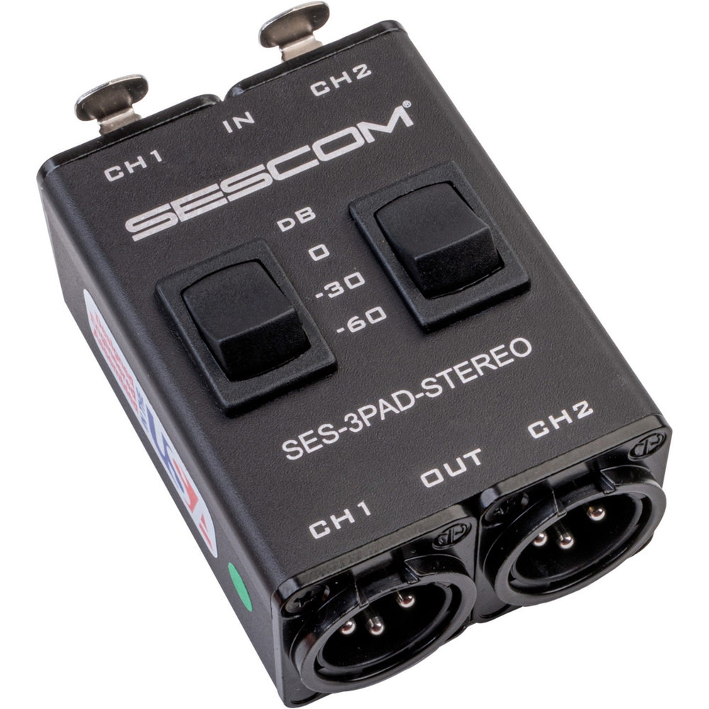 The Sescom SES-3PAD is a high-performance stereo 2-channel microphone pad designed for audio professionals who require precise and adjustable attenuation in their sound equipment. Whether you're working in a recording studio, live sound environment, or on-location setups, the SES-3PAD provides essential control over input levels. It’s ideal for use with microphones that have high output levels, such as condenser microphones, to prevent distortion and ensure optimal audio quality.