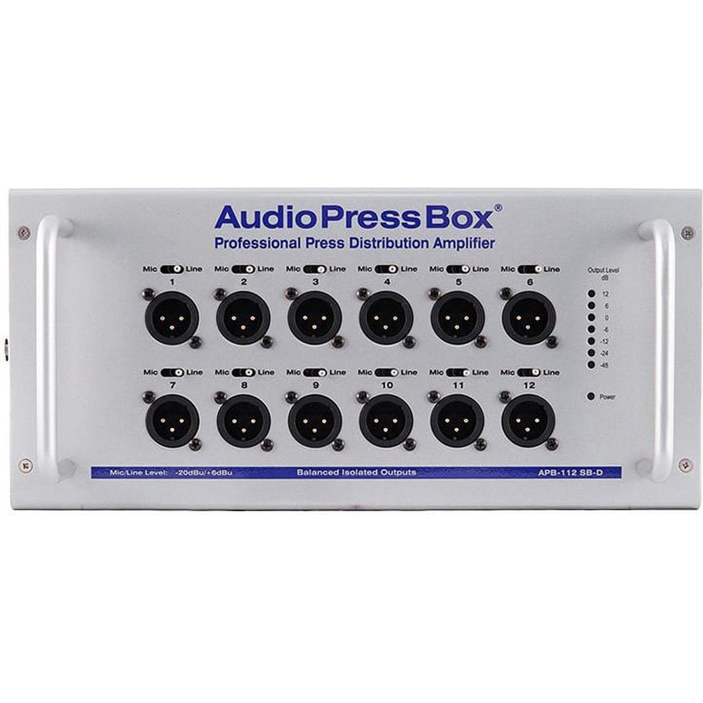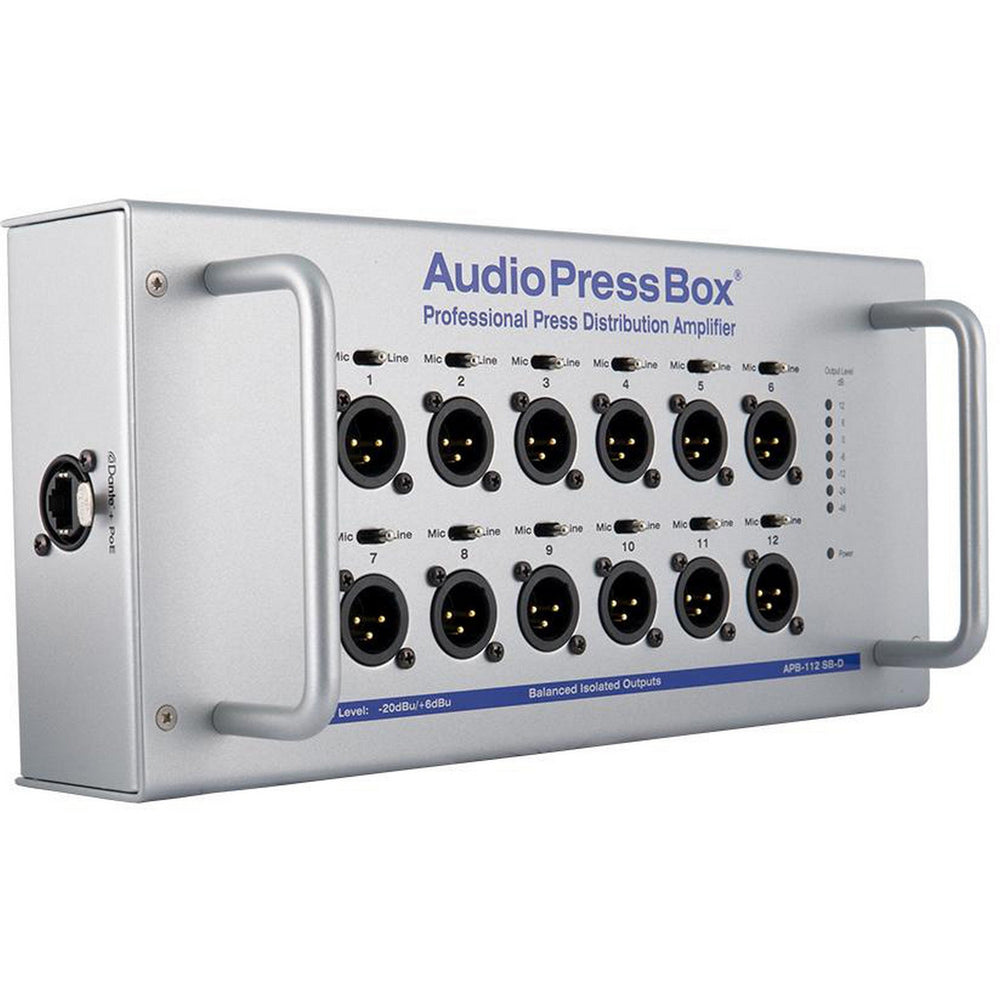 1x AudioPressBox APB-112-SB-D Portable Active Professional Audio PressBox with 1 Channel Dante Input/12 Line/Mic Outputs