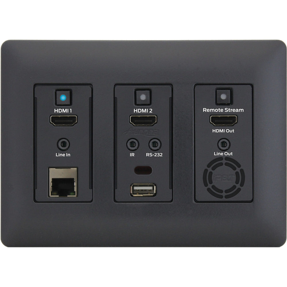 When the IPX-TCW3 is set up to be a transmitter, the 2 HDMI inputs become a source switch and the HDMI output becomes a potential loop out. When set up as a receiver, a user can select the local HDMI inputs or an IP source. Seamless switching of the sources further enhances the presentation. Regardless of how the IPX-TCW3 is set up, the audio can be de-embedded at any location, break away, and/or be sent to or received from a Dante enabled device. The USB 2.0 option is also flexible, working as a KVM and/or a high-speed data transfer (480Mbps) for memory sticks.