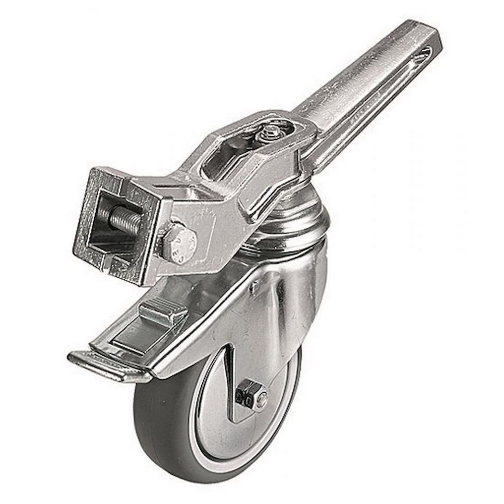 This set of 3 braked wheels are :100mm and are ideal for 20 x 20 and 25 x 25mm square legs to accessories stands.