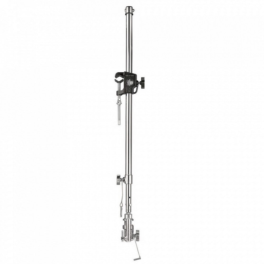 Avenger long telescopic hanger with universal head is a chrome-plated steel single riser with an integrated universal head that can support lights overhead. It can hold a payload up to 40kg depending on the attachment used. Can extend up to 3.81m. Attachment types are: 16mm male and 28mm female.