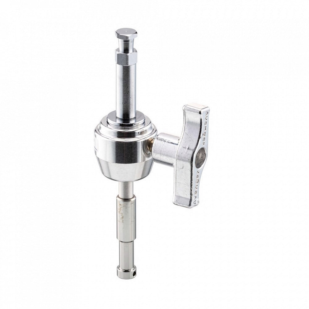 The Avenger Snap-In Baby Swivel with Ball (F820TH) is a versatile and durable accessory designed to provide flexibility and precise positioning for light fixtures. Its fixed 5/8" hex pin is designed to fit into a hex receiver such as a super clamp and support a fixture with a 5/8" receiver on its swiveling 5/8" Baby pin.